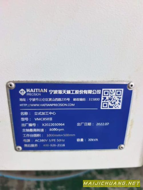 | 22年准新海天850加工中心,安装少用,需要的联系 信息编号:S132061